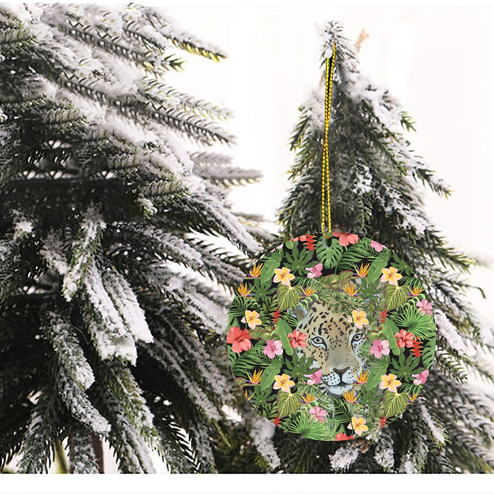 Melinda's Jaguar and Tropical Flowers Heart Shaped Christmas Ceramic Decoration